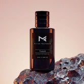 Thair is a mens fragrance that is warm, spicy, and creamy with a sophisticated, modern twist. It opens with warm spices like cinnamon and cardamom, a hint of citrus from bergamot, and orange blossom, leading into a prominent bourbon vanilla heart. The scent dries down with a gourmand-like base of praline, creamy woods, ambery notes, and musk.