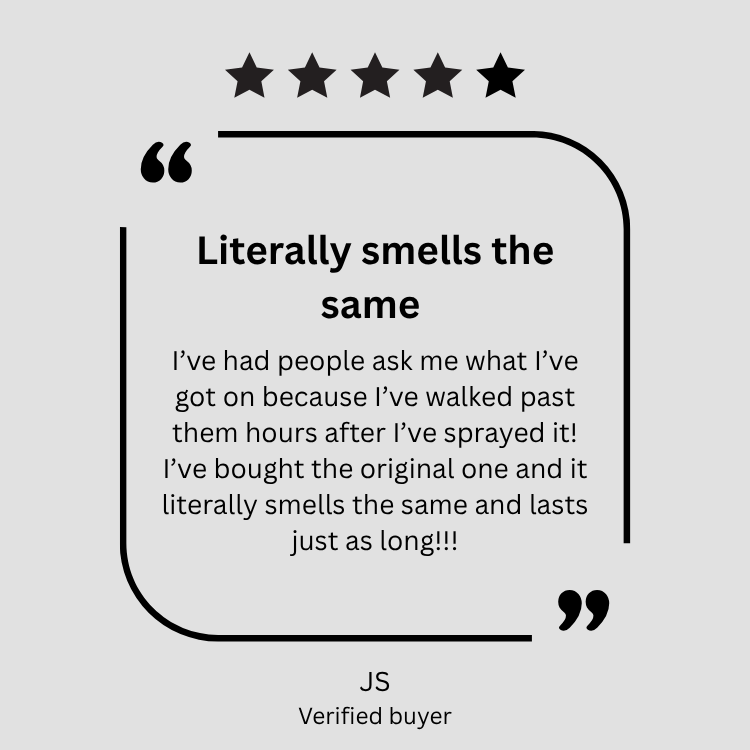 Please be aware that the products mentioned on our website serve as a general reference and should not be mistaken for the genuine high street, or designer brands under any circumstances. Names and copyrights, whether utilised or not, remain the exclusive property of their respective manufacturers and/or designers. Our fragrances are interpretations inspired by existing scents and are not exact replicas of any other fragrance or original creation. While our team strives to create close matches to well-known fragrances, olfactory perceptions are subjective.
