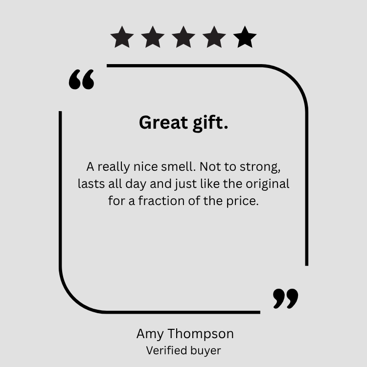 Please be aware that the products mentioned on our website serve as a general reference and should not be mistaken for the genuine high street, or designer brands under any circumstances. Names and copyrights, whether utilised or not, remain the exclusive property of their respective manufacturers and/or designers. Our fragrances are interpretations inspired by existing scents and are not exact replicas of any other fragrance or original creation. While our team strives to create close matches to well-known fragrances, olfactory perceptions are subjective.
