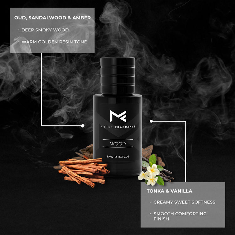 Wood is a smoky and woody unisex fragrance with a warm blend of oud. A prominent opening with cardamom and a hint of pink pepper adds a fresh, spicy feel. Rosewood, sandalwood, and vetiver form the core of this fragrance. The combination of amber, tonka bean, and oud gives it a warm and sensual base.