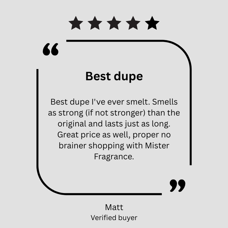 Please be aware that the products mentioned on our website serve as a general reference and should not be mistaken for the genuine high street, or designer brands under any circumstances. Names and copyrights, whether utilised or not, remain the exclusive property of their respective manufacturers and/or designers. Our fragrances are interpretations inspired by existing scents and are not exact replicas of any other fragrance or original creation. While our team strives to create close matches to well-known fragrances, olfactory perceptions are subjective.